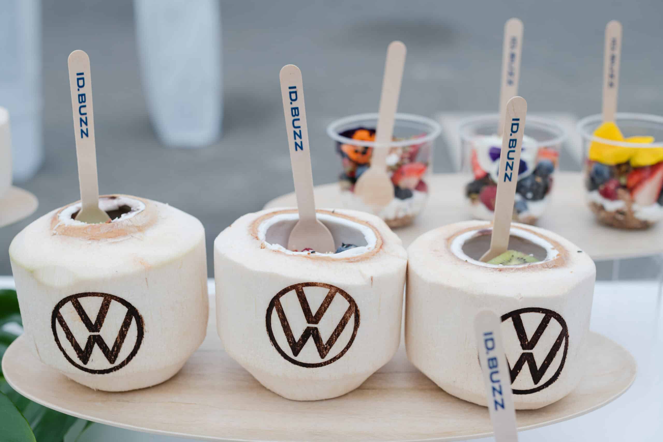 For the event, the SCHAFFER team designed a surf-culture menu and immersing attendees in VW logos and iconography at literally every service point: from acai bowls in VW-branded coconuts to SoCal Breakfast Grain Bowls, Tacos and custom pastry. We were allowed to shape the story of the launch with buzz, excitement and immersion to match the car itself. The menu specifically included: